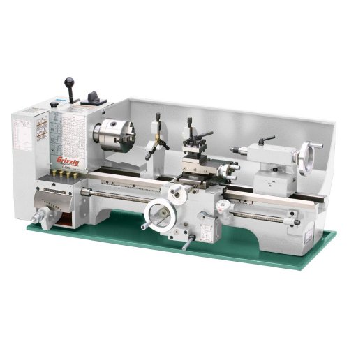 There's never been a better time to get into metalworking - or a better price on a professional-quality Grizzly metalworking lathe. The Model G4000 is precision crafted by one of our most-trusted factories for superior accuracy & long-lasting dependability. You won't find a better combination of price & performance on a full-featured 9" x 19" lathe anywhere! Specifications: ? Swing over bed: 8-3/4" ? Swing over cross slide: 5" ? Distance between centers: 19" ? Spindle bore: 3/4" ? Spindle thread: 39mm x 4mm pitch ? Spindle taper: MT#3 ? Motor: 3/4 HP, 110V ? Number of speeds: 6 ? Range of speeds: 130, 300, 400, 600, 1000, 2000 RPM ? Range of inch threads: 8-56 TPI ? Range of metric threads: 0.05-3.0mm ? Range of feeds: 0.0023-0.013 ? Lead screw: 9/16"-16 TPI ? Compound travel: 1-7/8" ? Cross slide travel: 4-1/4" ? Carriage travel: 16" ? Maximum tool size: 1/2" x 1/2" ? Tailstock barrel travel: 1-9/16" ? Tailstock barrel taper: MT#2 ? Number of longitudinal feeds: 18 ? Number of inch threads: 27 ? Number of metric threads: 11 ? Overall dimensions: 37"L x 20"W x 15"H ? Approx. shipping weight: 293 lbs. Standard Equipment: ? 4" 3-jaw chuck with two sets of jaws ? 7-1/4" 4-jaw chuck with reversible jaws ? Steady rest ? Follow rest ? MT#2 Dead center ? MT#3 Dead center ? MT#2 Live center ? 4-way tool post ? Faceplate ? Extra C-type tool post ? Tool Box & Tool Kit Special Price!